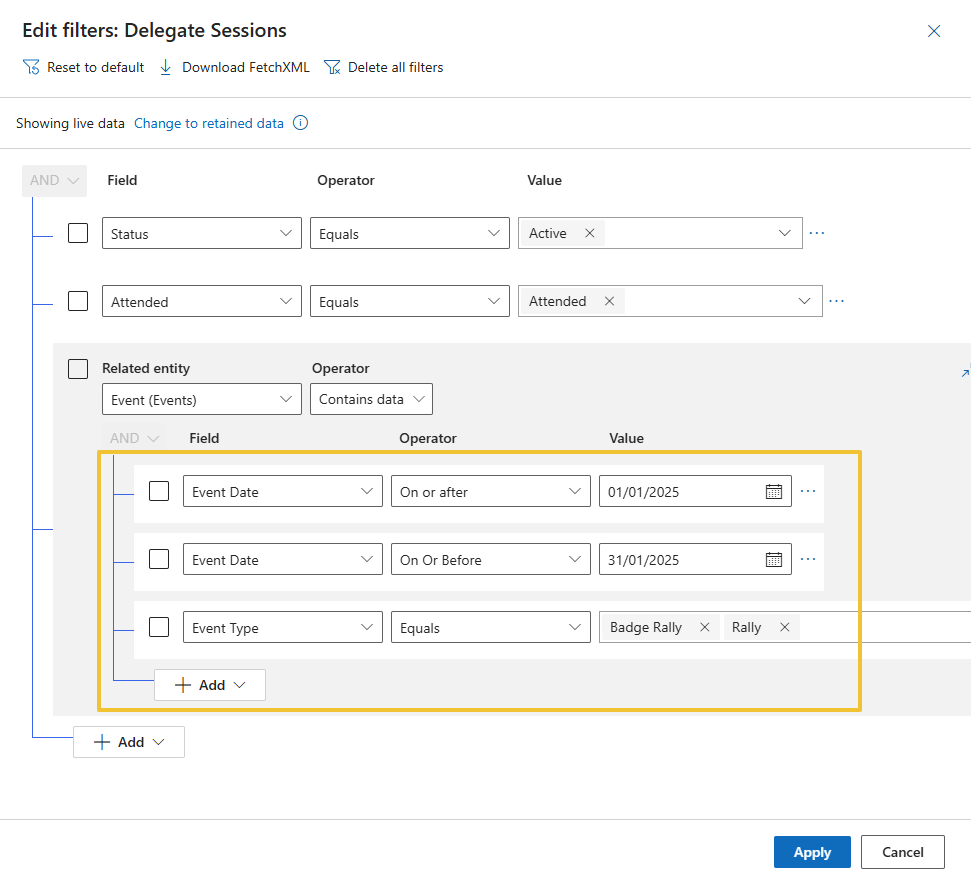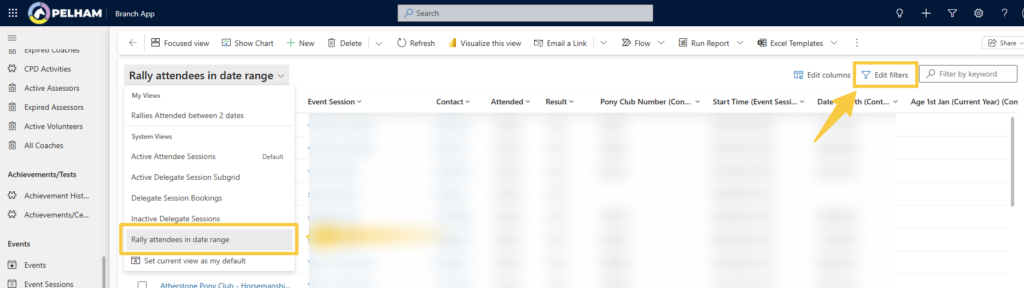 A View has also been created to allow you to filter on dates to determine events attended between a certain time period, called Rally Attendees in a Date Range, it defaults to the entire of 2024 but the dates and filters can be customized.